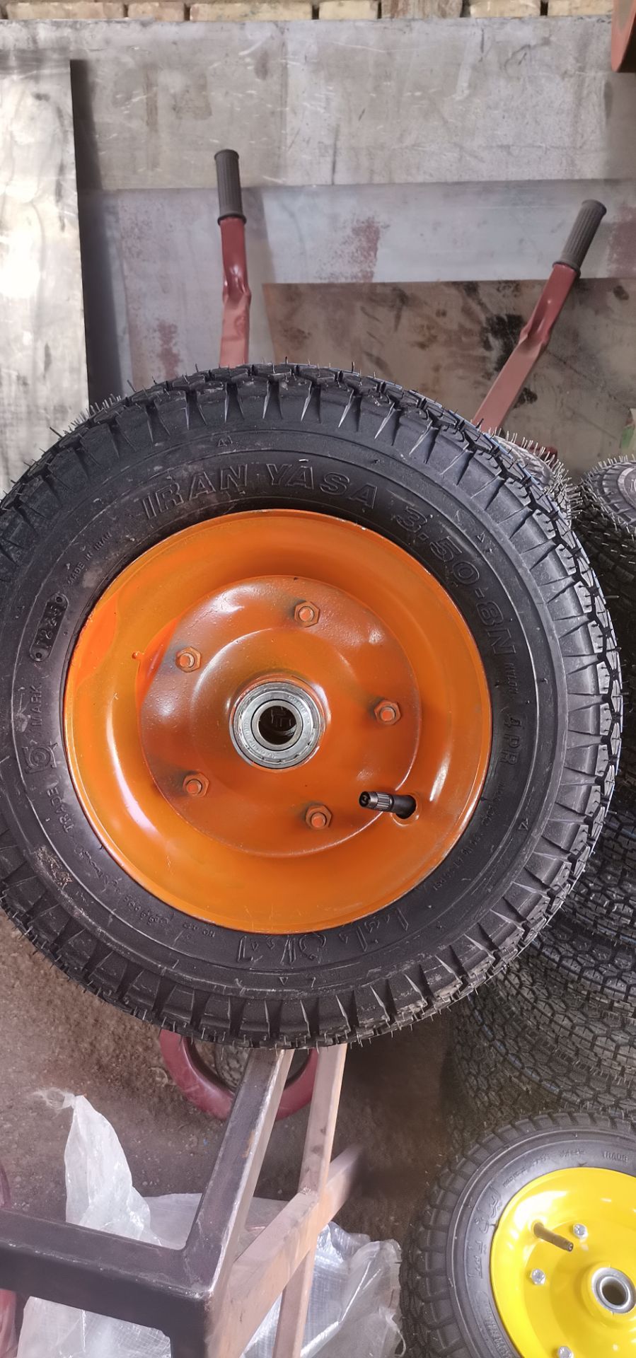چرخ کامل فرغون با رینگ ورق 2 بلبرینگ چینی و لاستیک یاسا 4 لایه گلریز